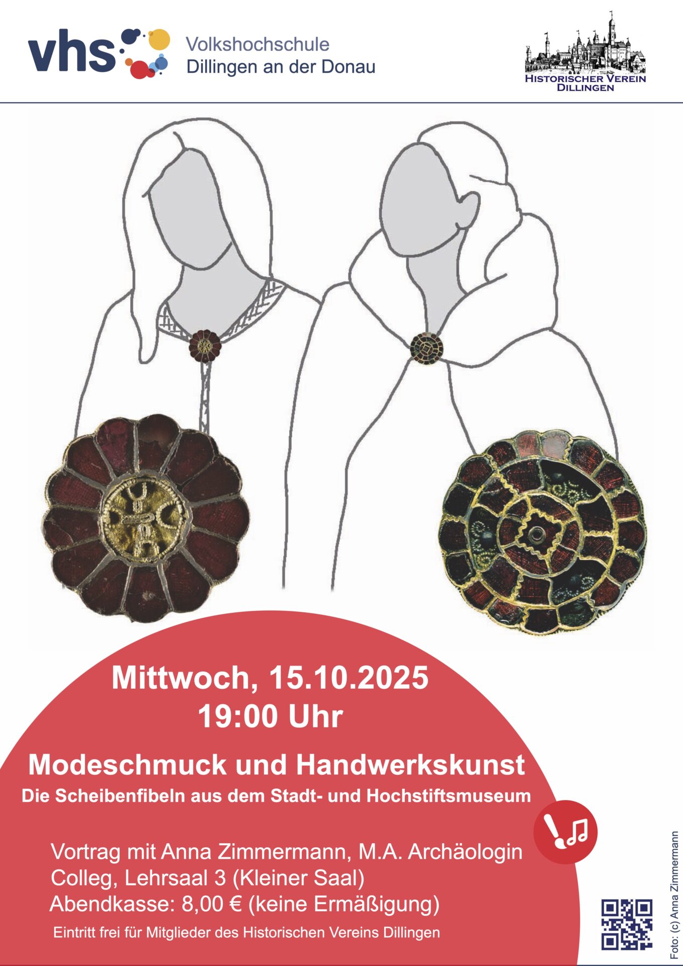 Zum Verschließen ihres Mantels nutzen Frauen im Frühen Mittelalter sogenannte Scheibenfibeln, die dem Prinzip einer Brosche entsprechen. Scheibenfibeln wurden mit unterschiedlichen Materialien und technischem Aufwand hergestellt. Das Qualitätsspektrum reicht von simplen Objekten aus Buntmetallblech bis zu komplexen Objekten aus einer Goldlegierung und Halbedelsteinen. Anhand der Qualität der Scheibenfibeln lassen sich Rückschlüsse zum sozialen Status ziehen. Dies wird exemplarisch anhand der Scheibenfibeln aus dem Gräberfeld von Schretzheim vorgeführt, die im Stadt- und Hochstiftmuseum in Dillingen aufbewahrt werden.