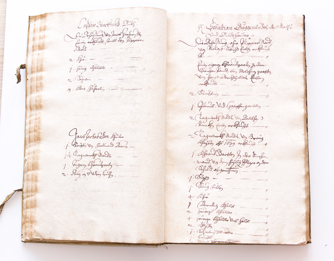 Hier sehen sie einige Seiten aus dem Herdstättenverzeichnis der Stadt Dillingen von 1639